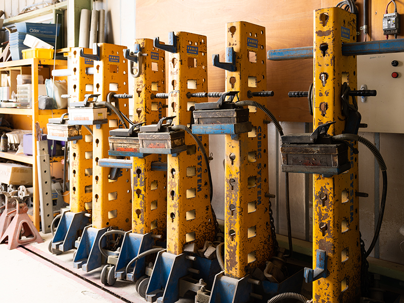 車体の歪みをミリ単位で矯正できる、明々工業社製のキュービックシステムです。